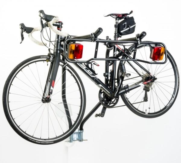 Two 'L' shaped arms easily fit into the tow bar mounting and carry the bikes by their frames.