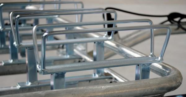 Raised Supports for longer bikes: Now available with optional raised tyre supports at the front. The front 6 tyre supports are replaced by raised versions which allow longer bikes to fit outside the chassis. These are reccomended for any bikes with long wheelbases, particularly downhill mountain bikes and electric bikes or any bike with a wheelbase greater than 1100 mm.